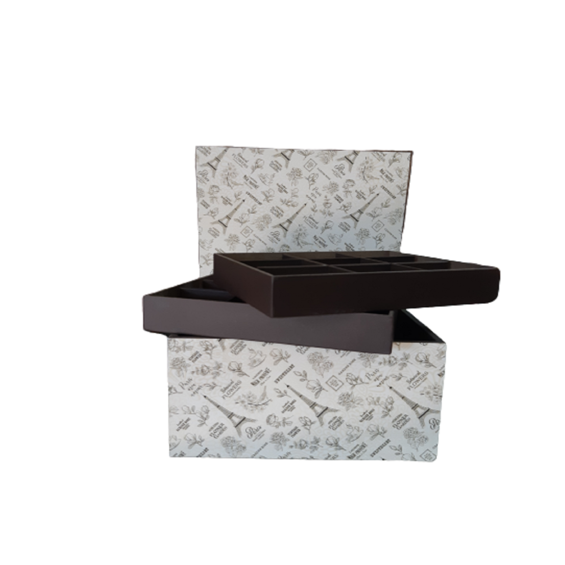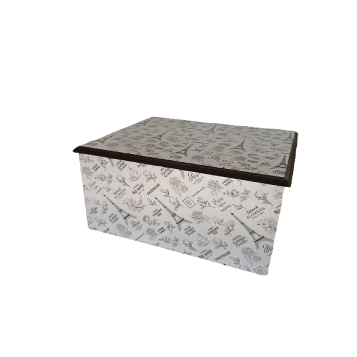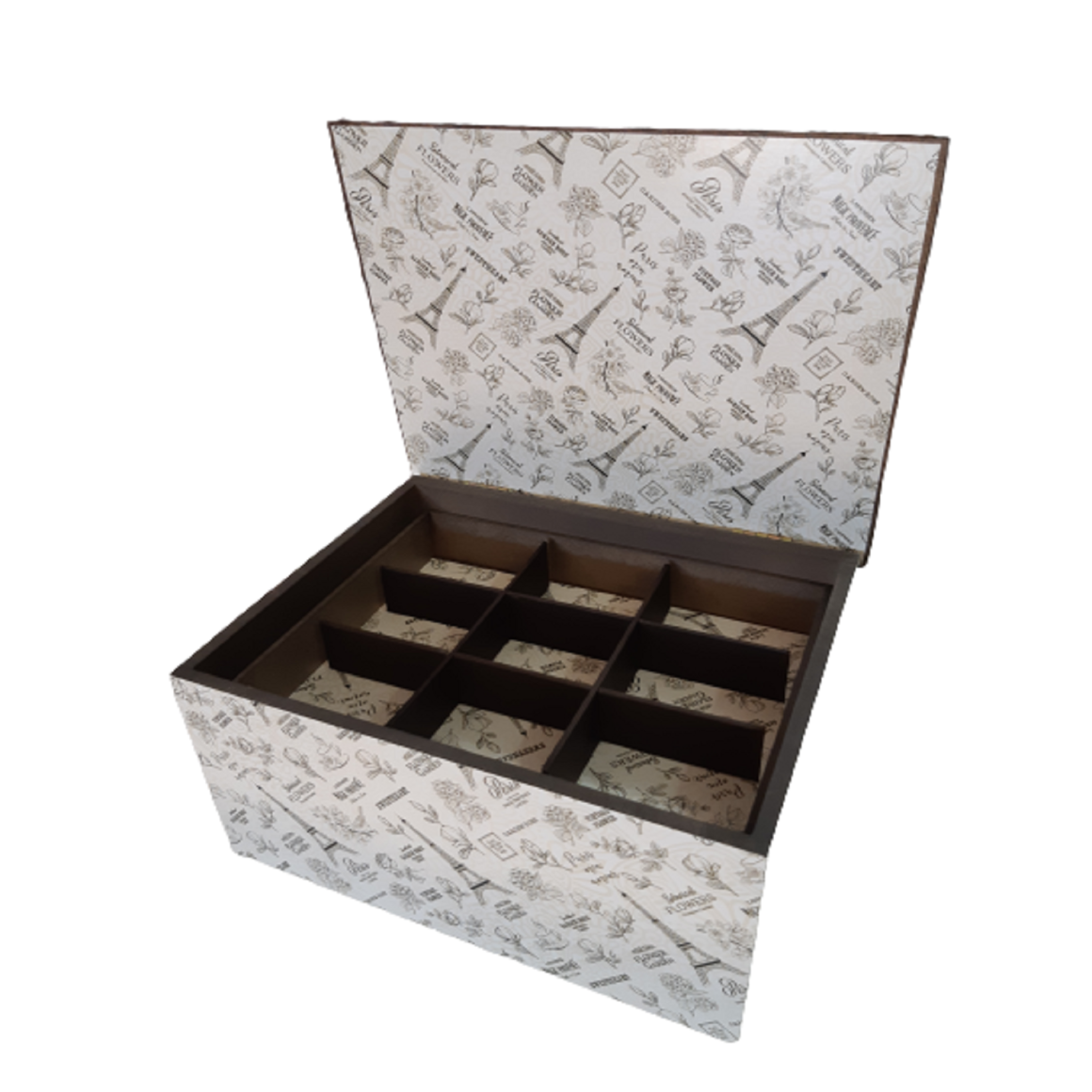 Confeccionado em MDF e revestido em estampa, contendo 3 andares, 2 bandejas e 1 fundo falso.