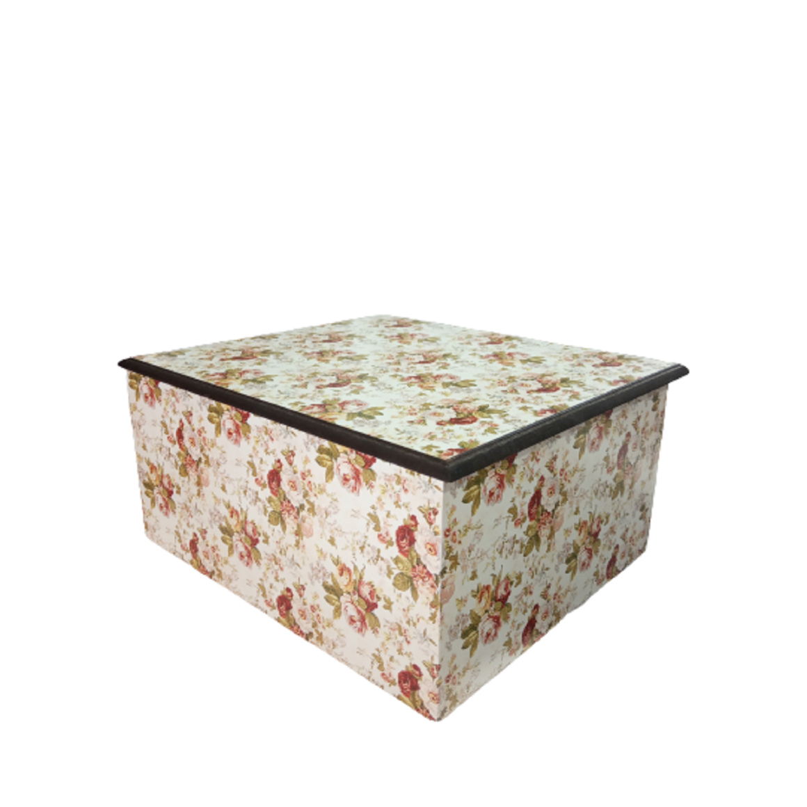 Confeccionado em MDF e revestido em estampa, contendo 4 andares, 3 bandejas e 1 fundo falso.