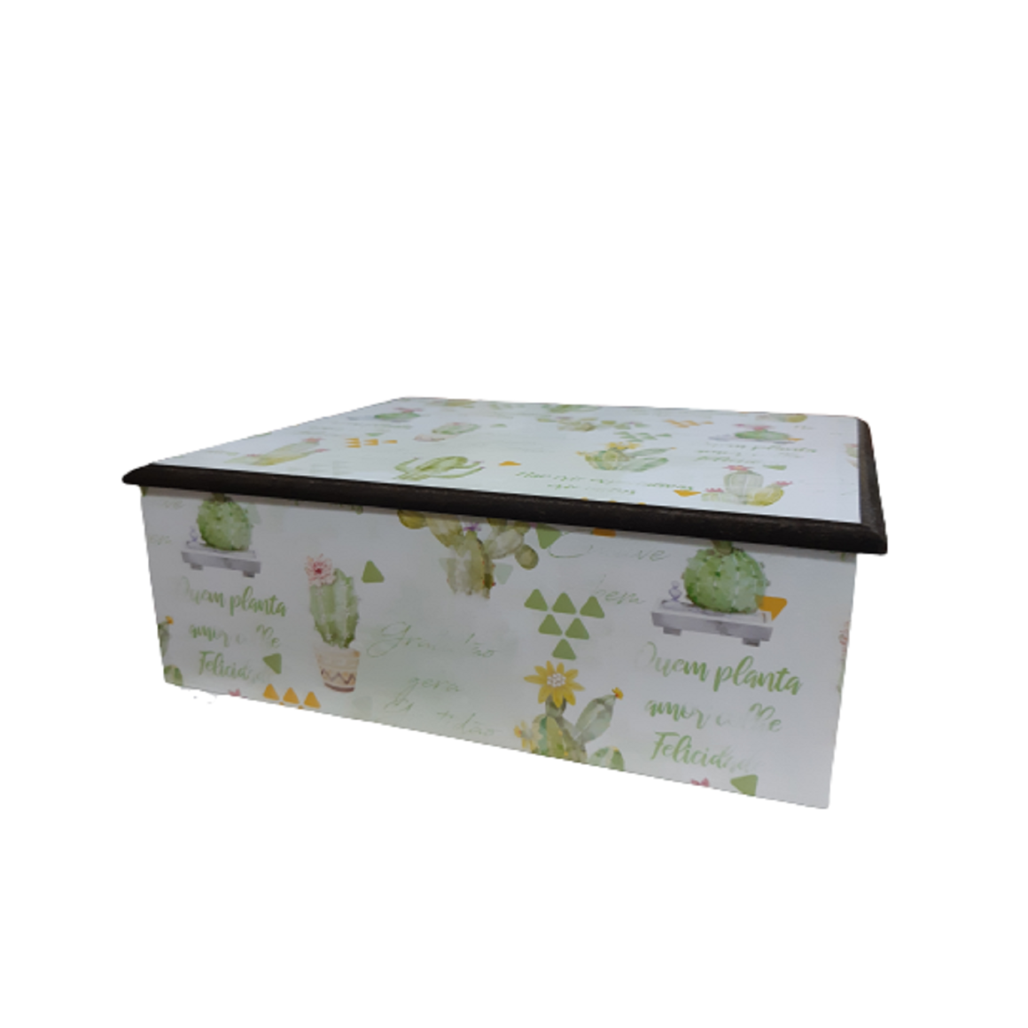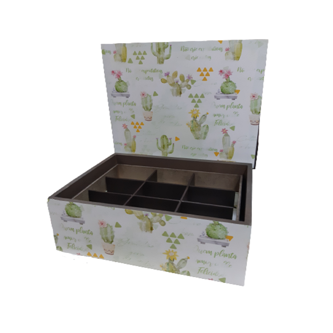 Confeccionado em MDF e revestido em estampa, contendo 2 andares, 1 bandejas e 1 fundo falso.