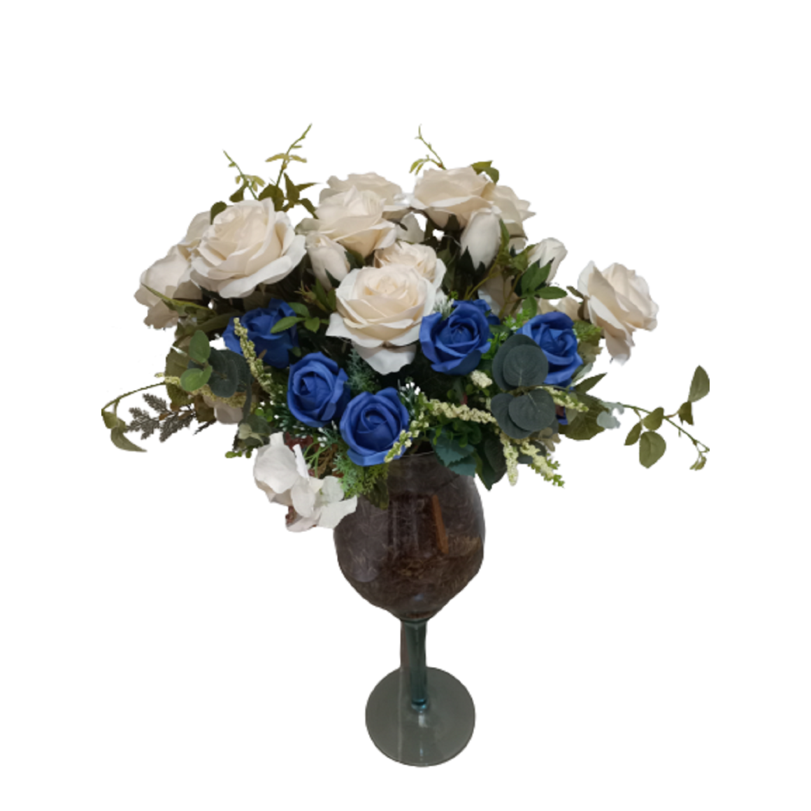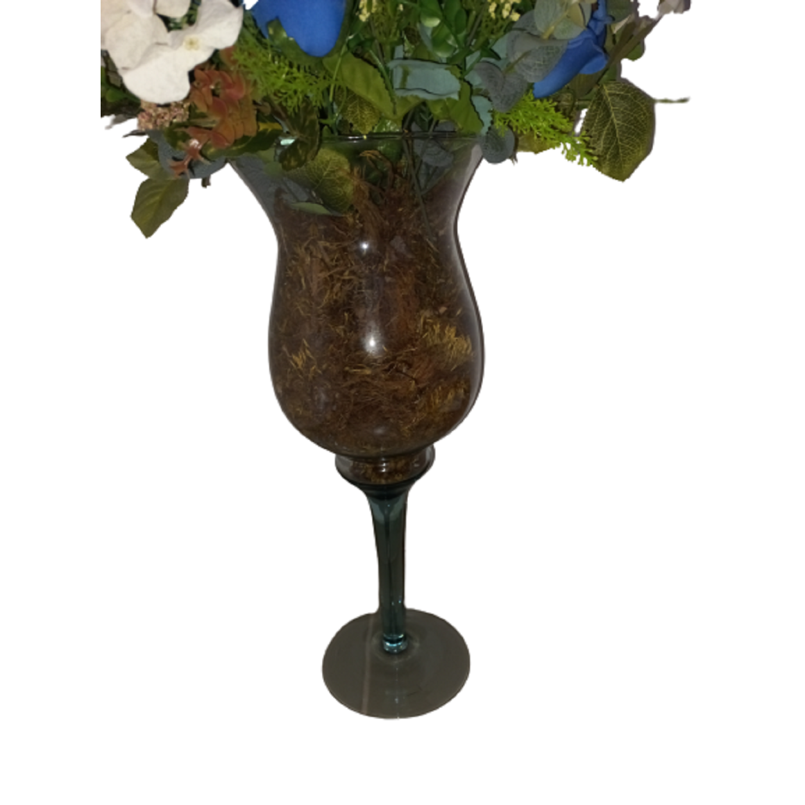 Material: Vaso de Vidro com Flores Artificiais