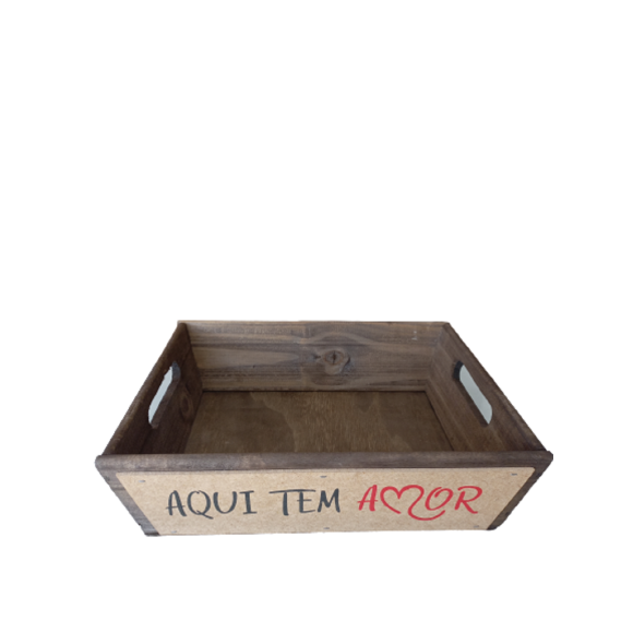 Bandeja Marrom Com Mensagem- Aqui Tem Amor