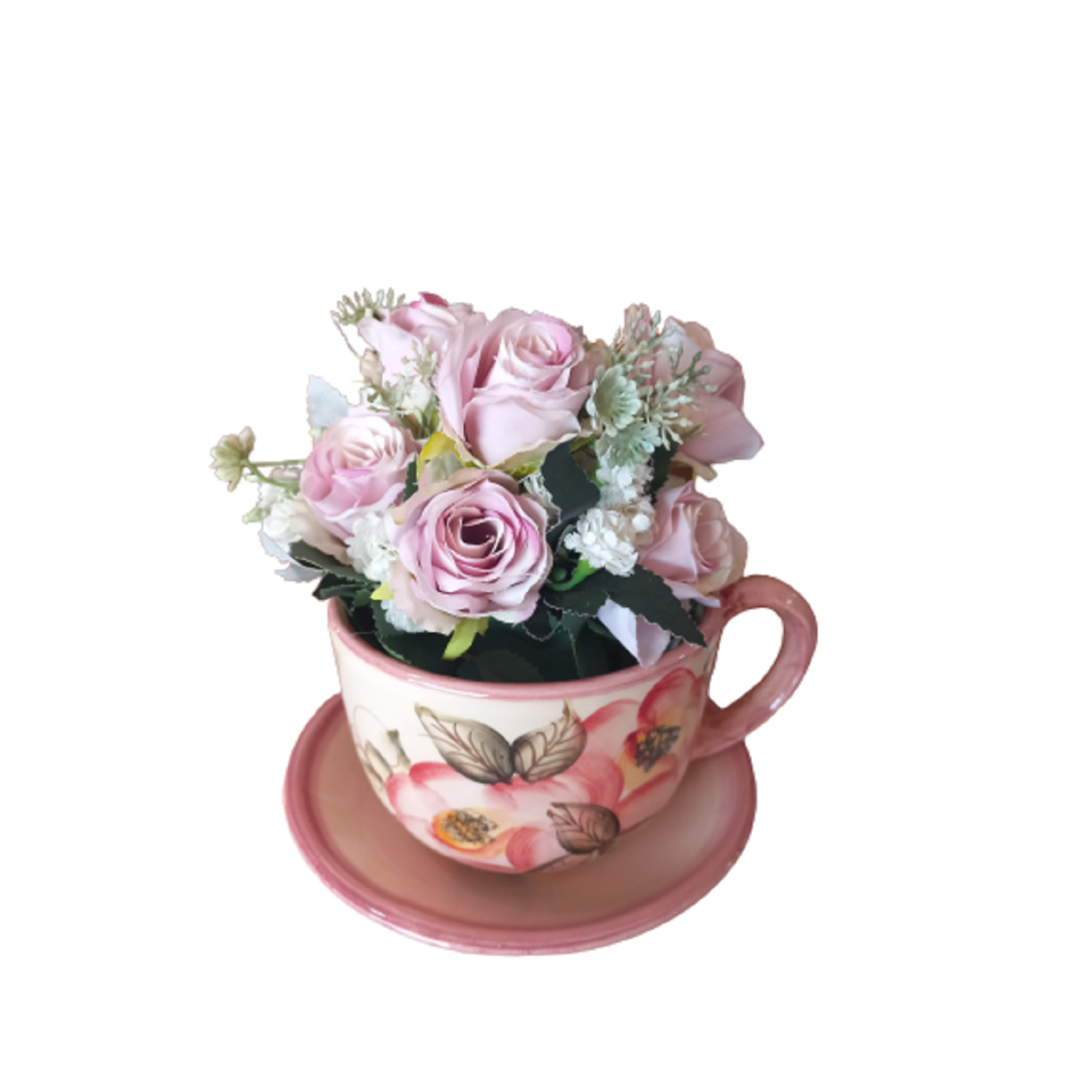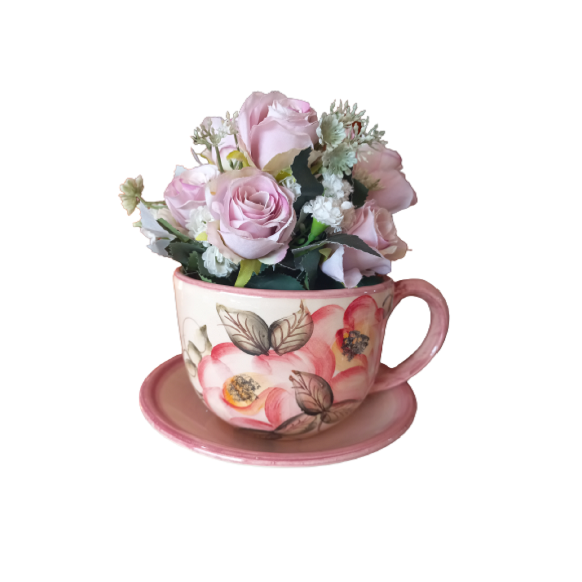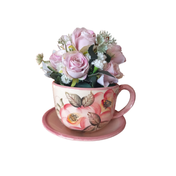 VASO/ CACHEPOT XÍCARA GRANDE COM PRATINHO/PIRES EM CERÂMICA