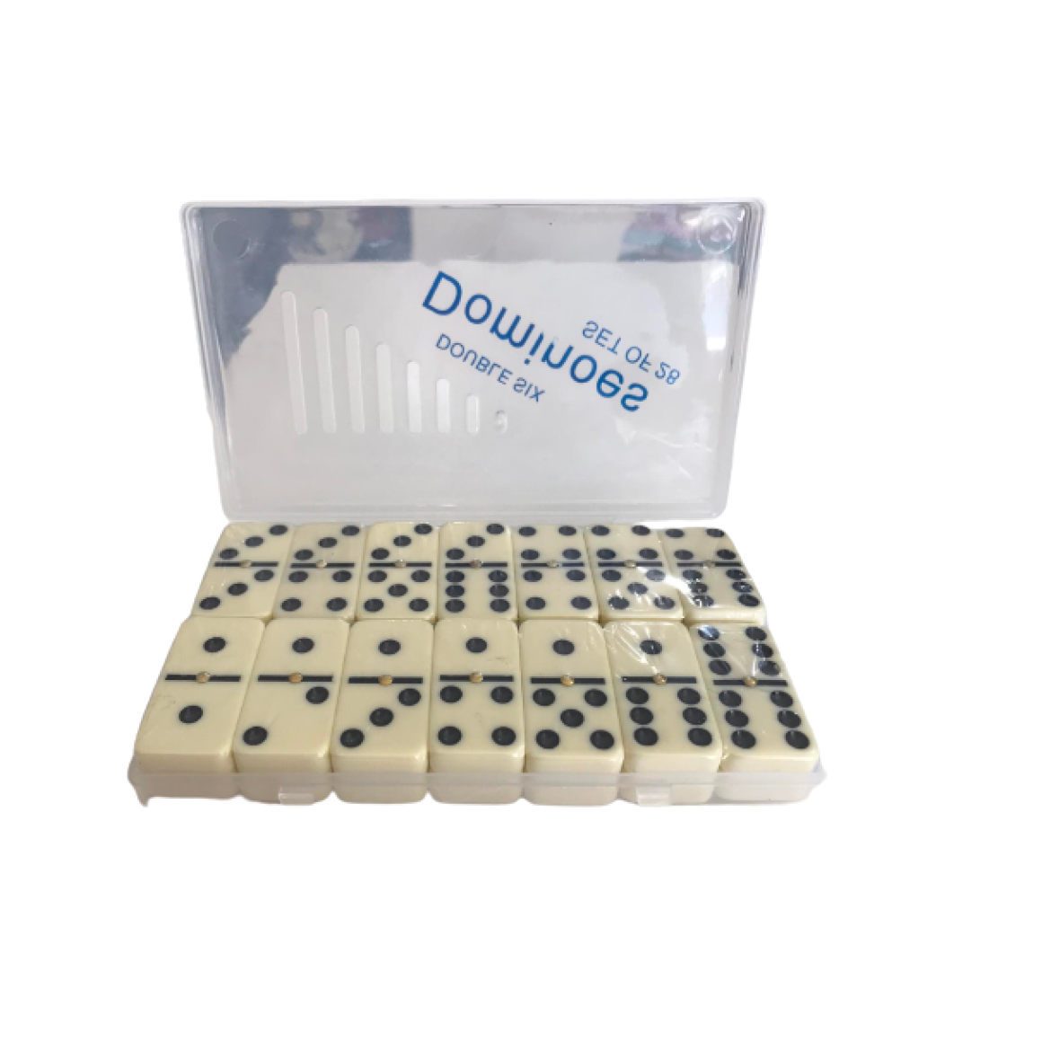 Jogo de dominó de profissional. Estojo de plástico com 28 peças.
