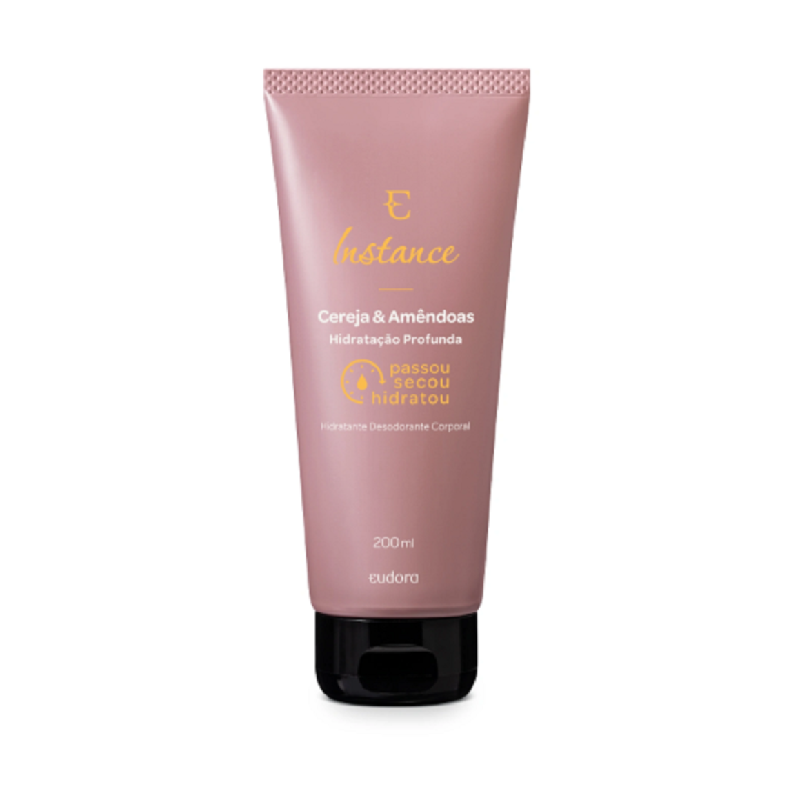 A linha Instance Eudora Cereja e Amêndoas conta com produtos que entregam ultra hidratação, que envolvem sua pele com uma fragrância sedutora e única todos os dias. Com ingredientes naturais e nutritivos, não possui óleo mineral, sulfatos, parabenos e petrolatos, garantindo em uma textura cremosa todo o cuidado que sua pele merece.