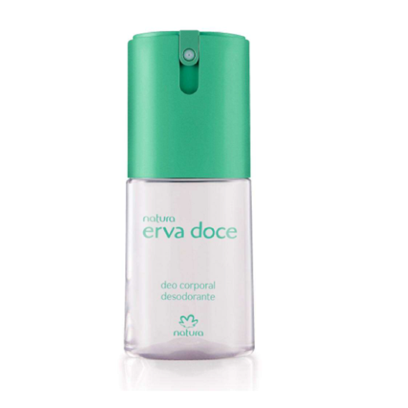 Com fragrância aromática, fresca e natural, Natura Erva Doce faz um convite para uma pausa e para mais significado nos simples rituais diários. Este desodorante corporal foi desenvolvido para proteger e perfumar sua pele com tecnologia desodorante que protege contra odores da transpiração. Conteúdo: 100 ml.