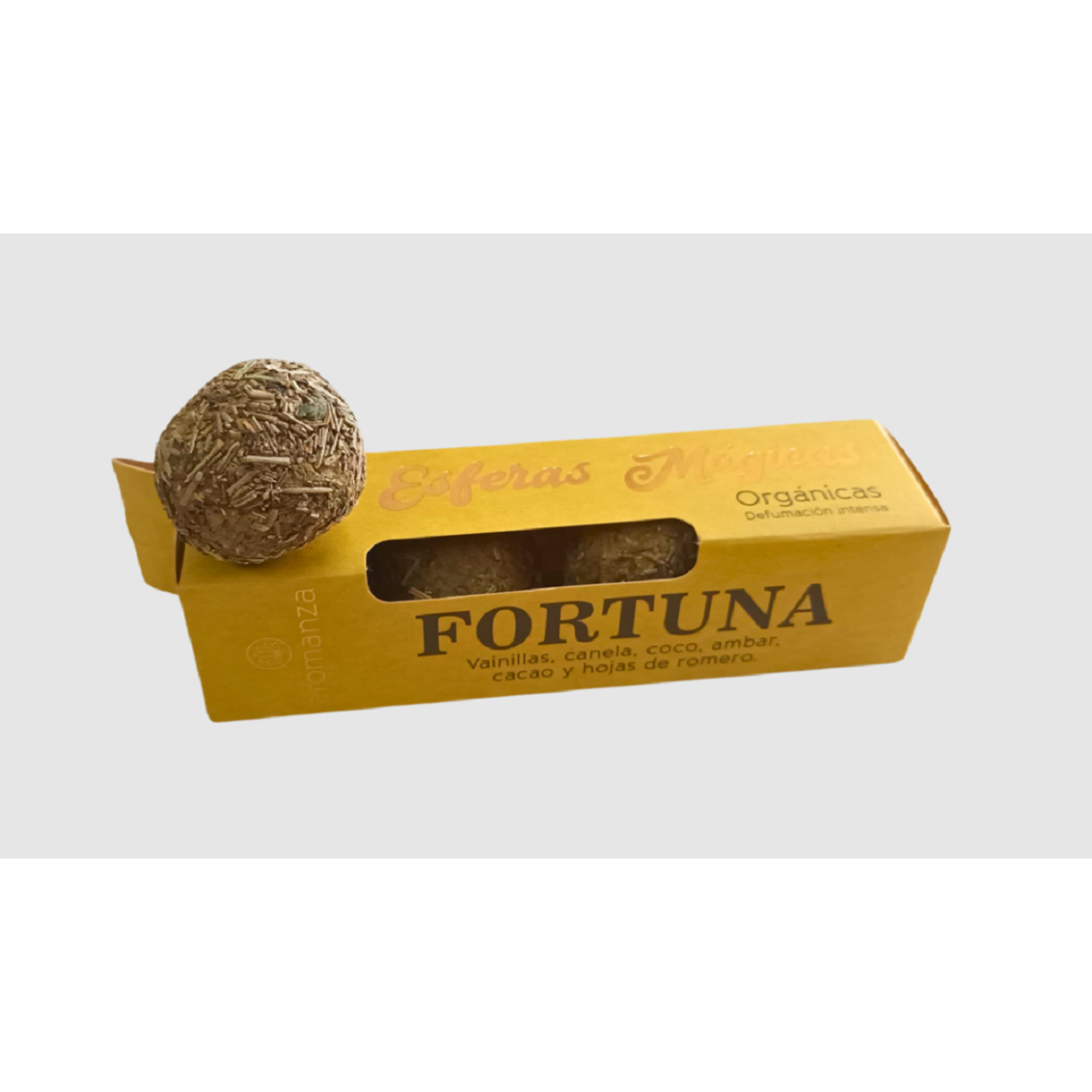 Contém: 04 Unidades Aroma: Fortuna (Baunilha, Canela, Coco, Âmbar, Cacau, Folhas de Alecrim) Composição: Pó de madeira, Nitrato de potássio, Fragrância e corantes. Conteúdo: 41g Modo de Uso: Pegue a esfera e acenda-a por baixo com um isqueiro, fósforo ou vela. Depois de acesa, coloque a esfera em um recipiente não inflável. Quando terminar de enfumaçar apague com água e descarte os restos.