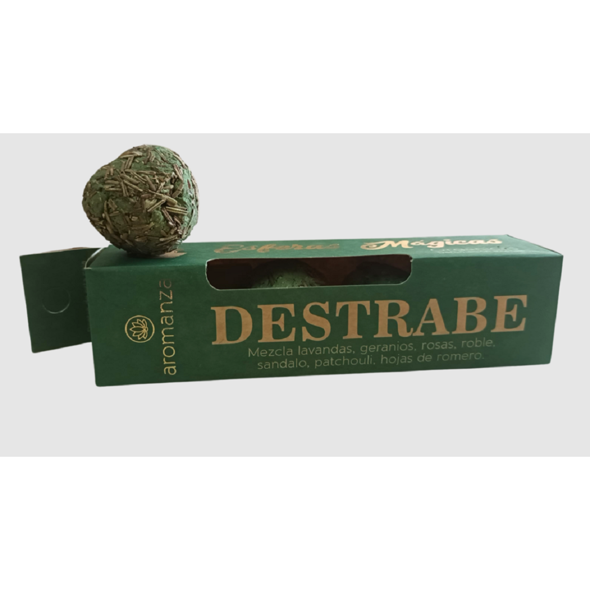 Contém: 04 Unidades Aroma: Desbloquear (Mesclas de Lavanda, Gerânios, Rosas, Carvalho, Sândalo, Patchouli, Folhas de Alecrim) Composição: Pó de madeira, Nitrato de potássio, Fragrância e corantes. Conteúdo: 41g Modo de Uso: Pegue a esfera e acenda-a por baixo com um isqueiro, fósforo ou vela. Depois de acesa, coloque a esfera em um recipiente não inflável. Quando terminar de enfumaçar apague com água e descarte os restos.