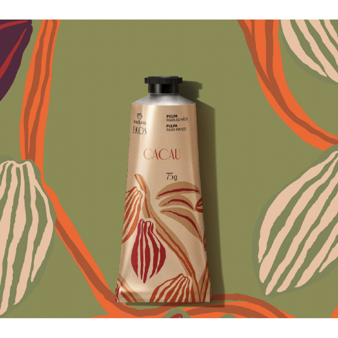 Ekos Cacau é uma linha de edição limitada em parceria com a artista amazônida Winny Tapajós.