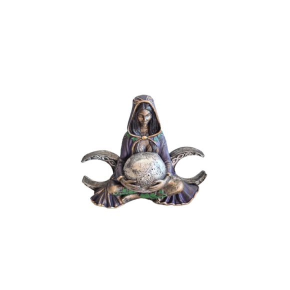 Estátua Deusa Triluna Wicca Tríplice Lua Bruxa Em Resina