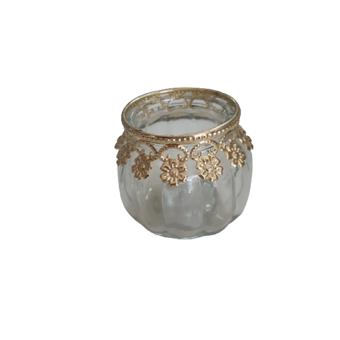 CASTIÇAL DE VIDRO BORDA DOURADA