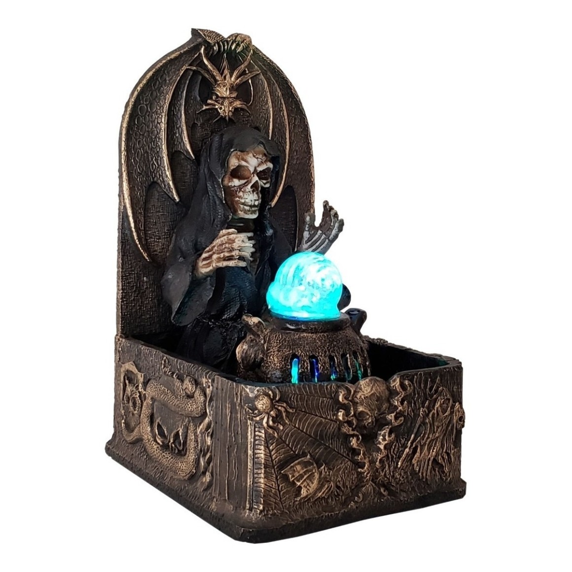 Produto confeccionado em resina. Acompanha a bomba d'água, disponível em 110V ou 220V, mencionar a voltagem na observação do pedido. O produto pode variar de cor sem opção de escolha.