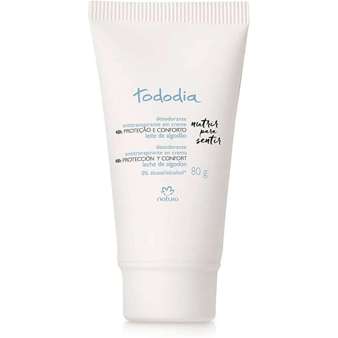 Com a rotina corrida, indo de casa para o trabalho ou escola, depois para a academia ou o happy hour, você precisa de um desodorante que te deixe protegida e confortável durante todo o dia. Com fórmula mais suave, que não deixa manchas brancas, o desodorante em creme de Tododia garante axilas secas e protegidas por 48 horas, perfeito para o seu dia a dia agitado.