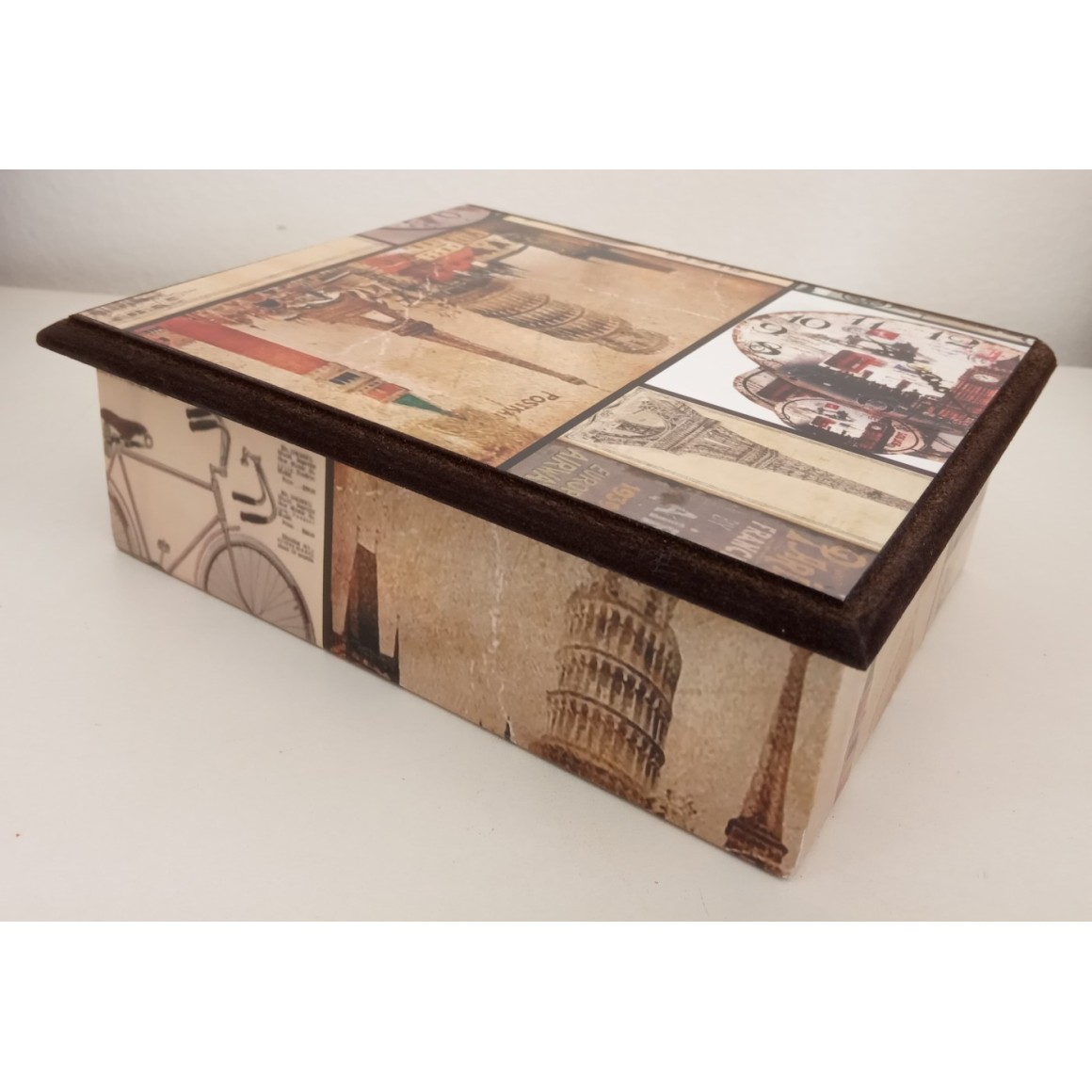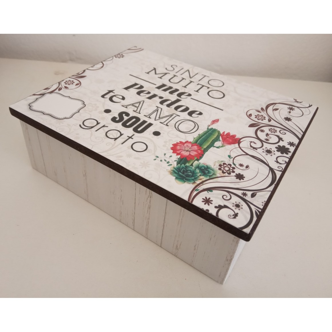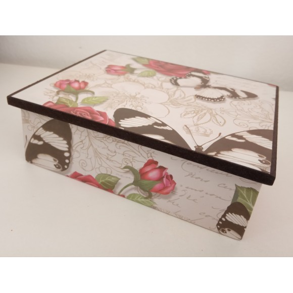 Confeccionado em MDF e revestido em papel decoupagem, contendo divisória.