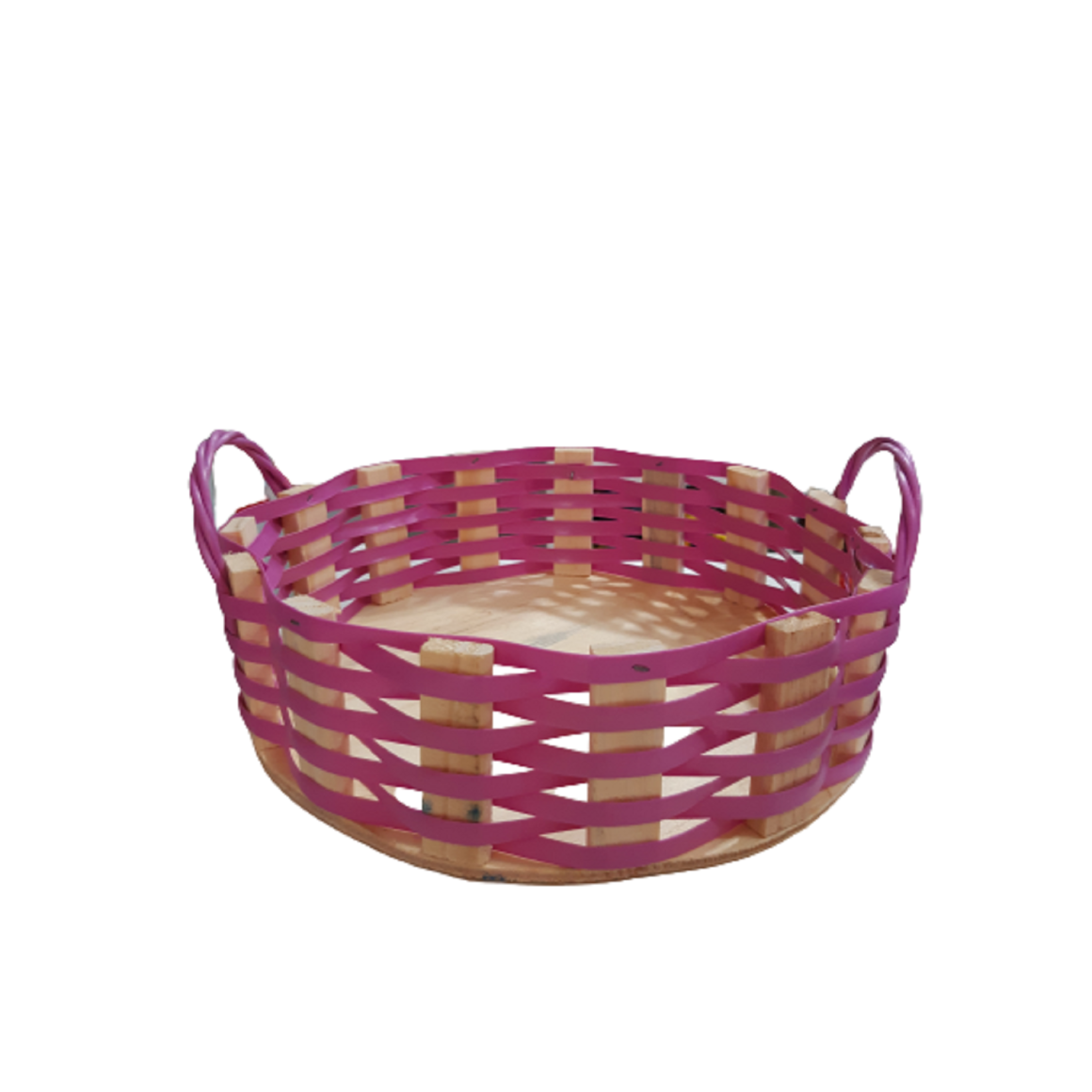 BANDEJA DE MADEIRA COM VIME ROSA PEQUENA