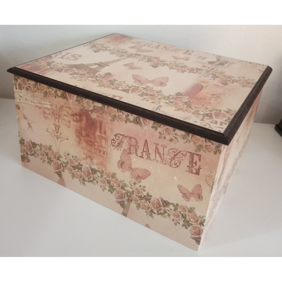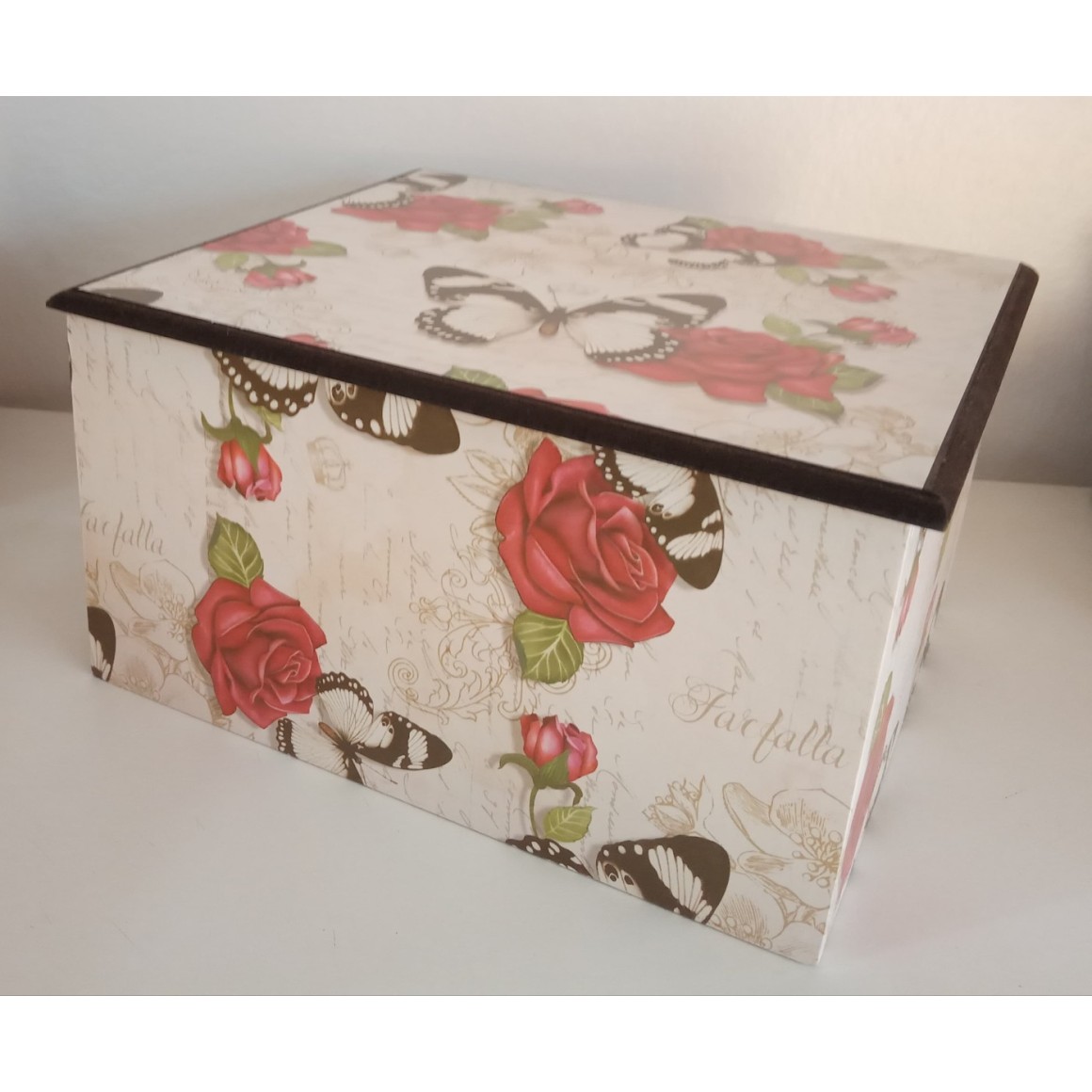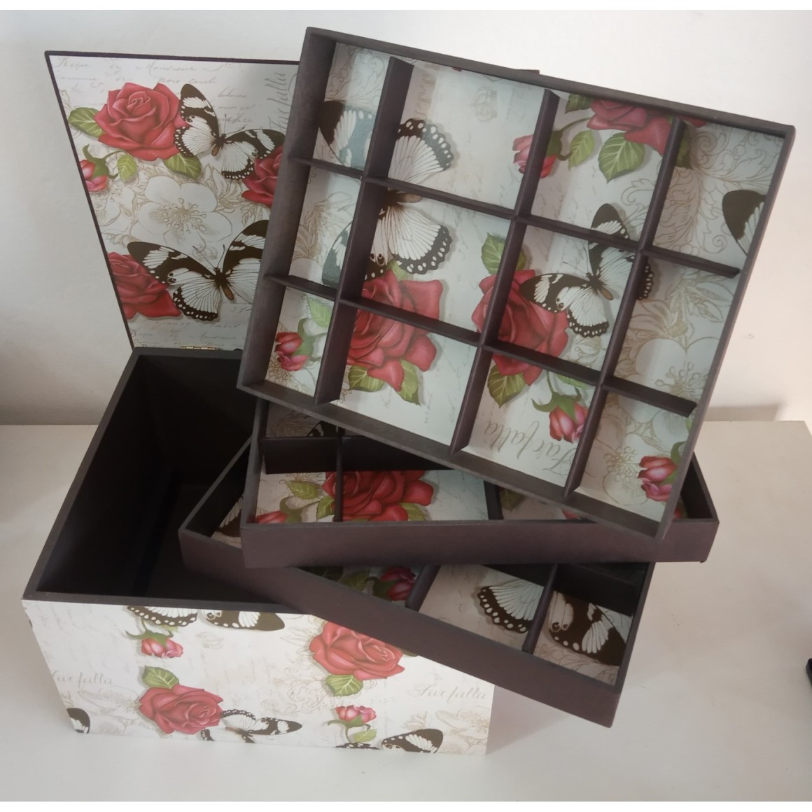 Confeccionado em MDF e revestido em papel decoupagem, contendo três bandejas.