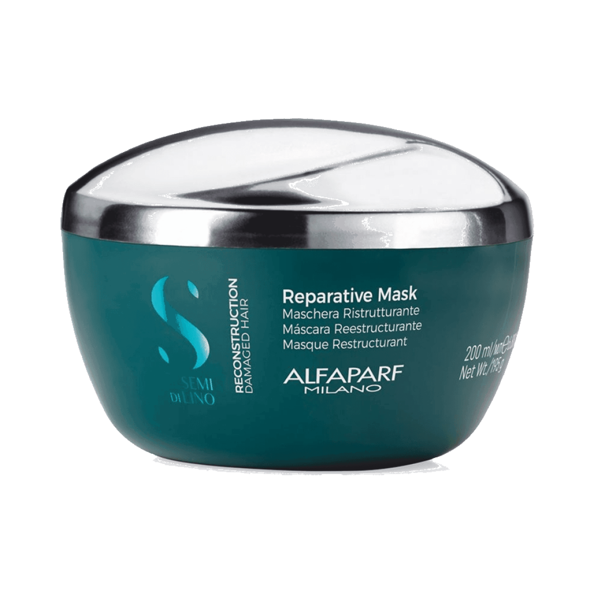 Máscara capilar para cabelos danificados. Alfaparf Semi Di Lino Reconstruction Reparative Mask repara a estrutura desde o córtex e melhora a resistência do fio. Ideal para cabelos que foram agredidos por processos químicos ou mecânicos.